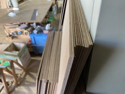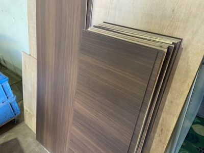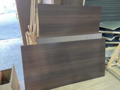 現場の壁に貼る腰板のポリ板をカットする依頼をいただき100枚ほどカットしました。