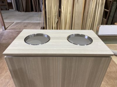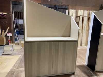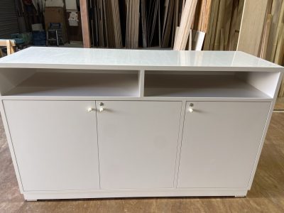 白のポリ板、メラミンで仕上げています。