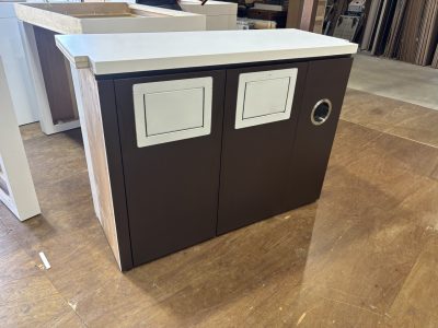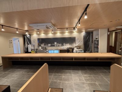 収納力と作業動線を意識したレイアウトに。洗面器も組み込み、実用性とメンテナンス性を両立した作りになっています。設置完了後は水道業者様へバトンタッチし、現場は次工程へ。